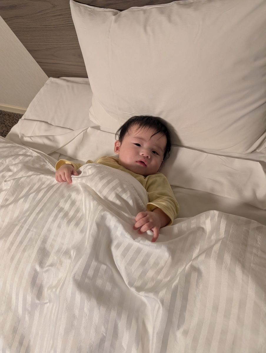 息子も初めての旅なのに妻のお母さんとずっと笑顔でキャッキャ戯れていました。